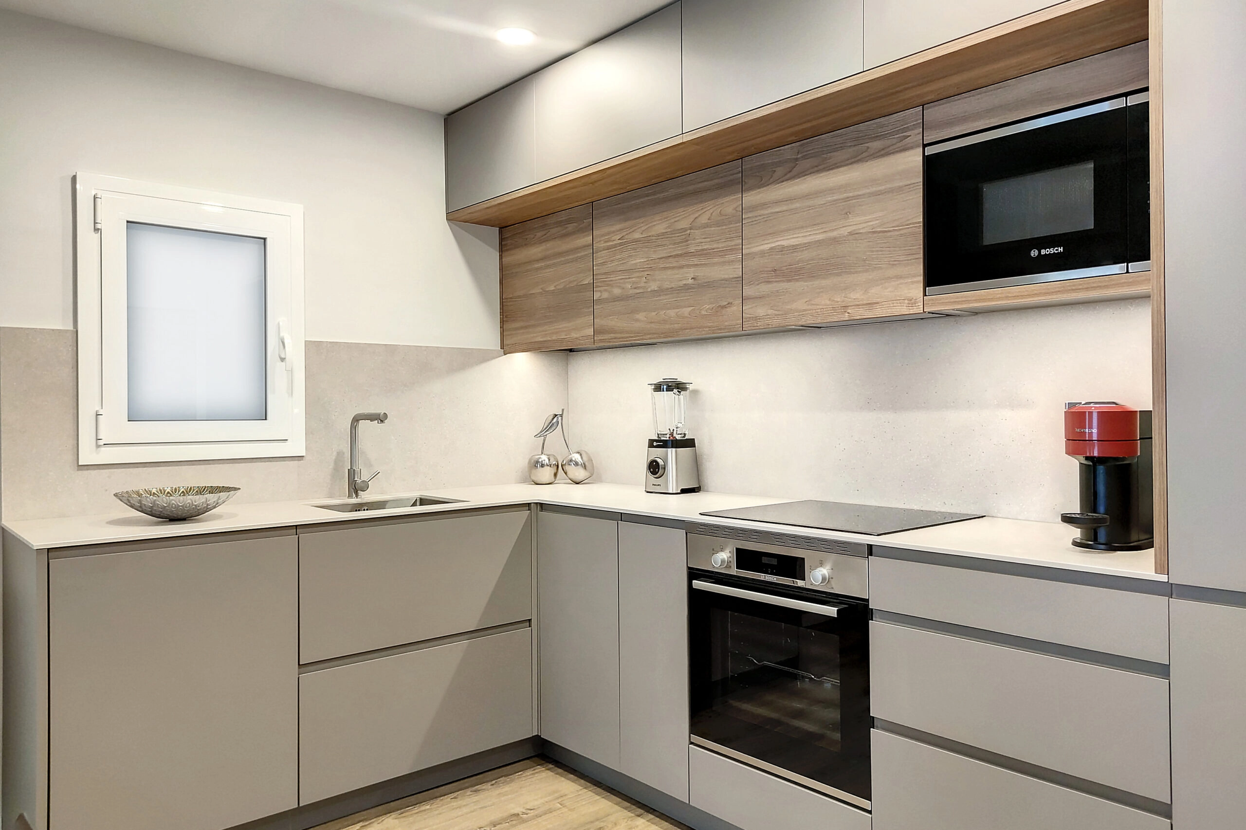 Transformamos una cocina obsoleta en un espacio culinario de alta gama con gabinetes personalizados, electrodomésticos de primera y acabados elegantes.